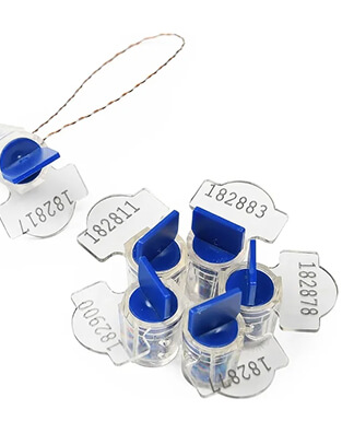 High-strength aluminum and steel seals for maximum security environments. Weather-resistant, tamper-evident construction.