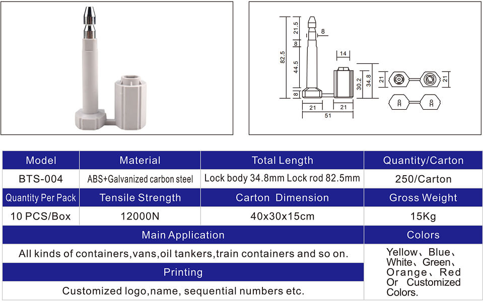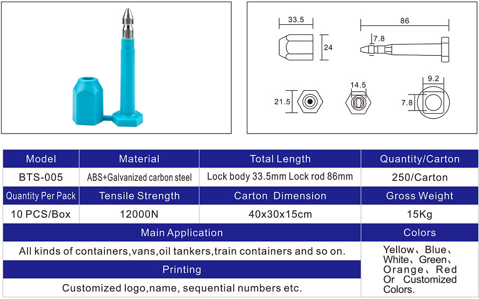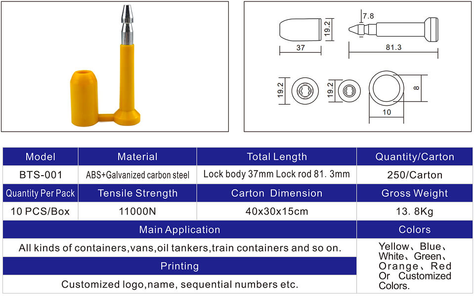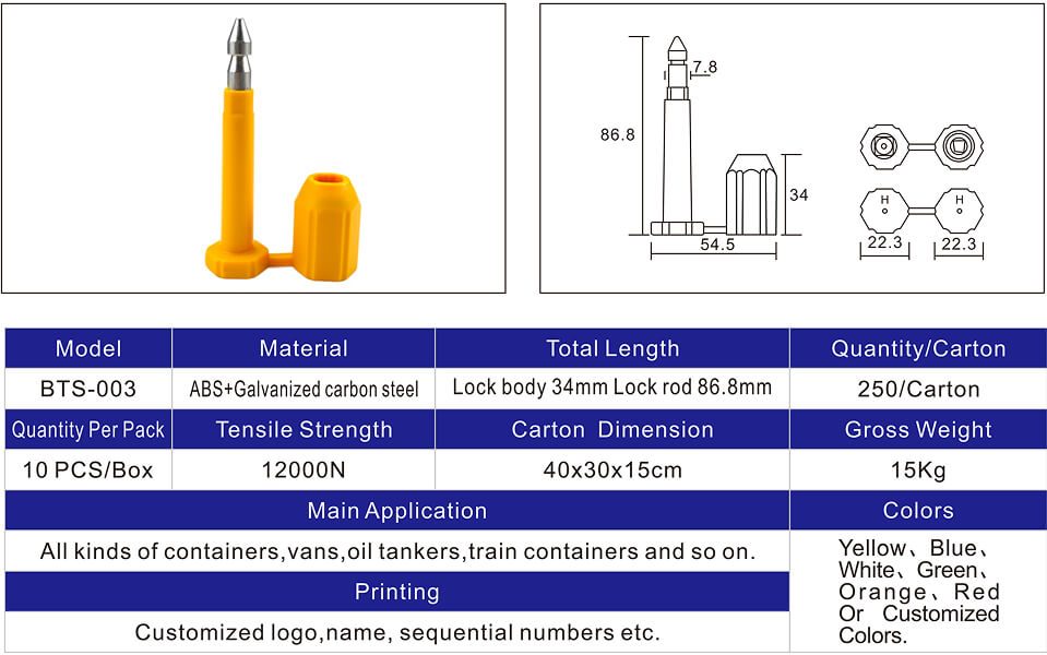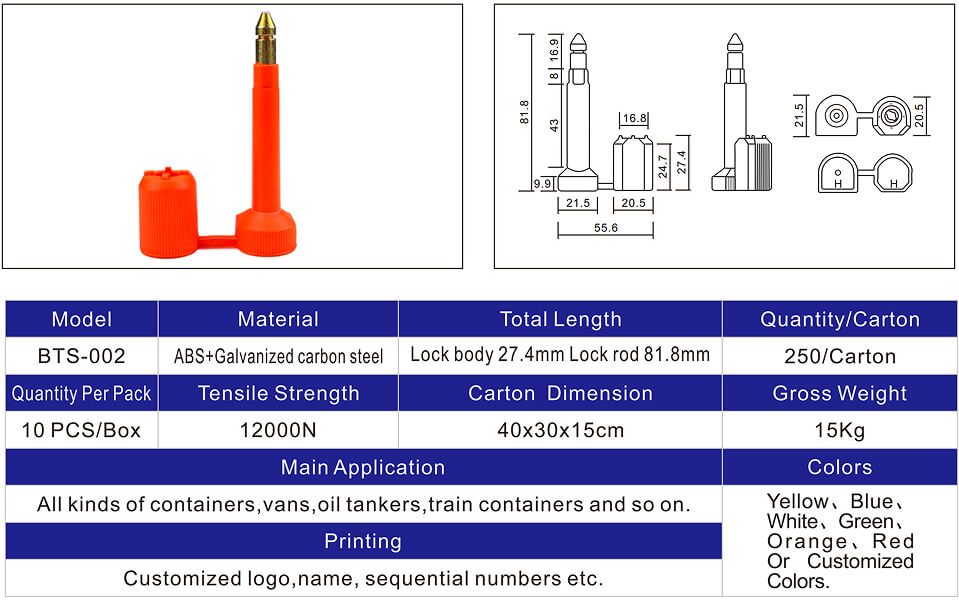 We can send custom bolt seal samples within 7 days. We can ship samples for non-custom products within 3 days, allowing you to review the quality before placing a larger order.